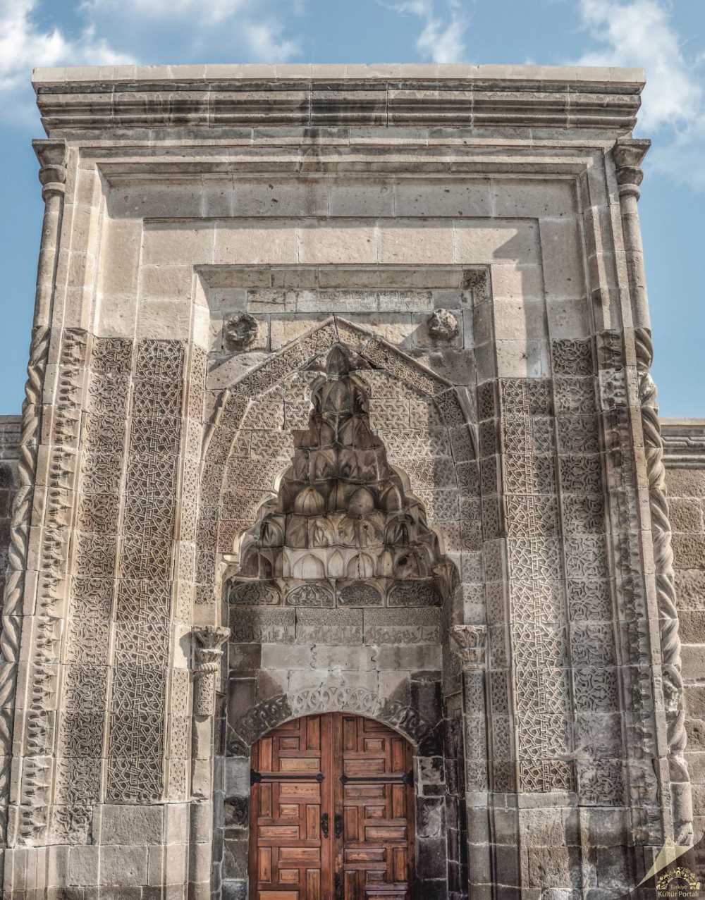 Sahabiye Medresesi Selçuklu Sultanı III. Gıyasettin Keyhusrev zamanında Sahib Ali bin Hüseyin tarafından 1267-68 yılında inşa ettirilmiştir. Medresenin kitabesinde banisi (kurucusu) olarak zikredilen zatın, ünlü Selçuklu veziri Sahib Ata Fahreddin Ali olduğu anlaşılmaktadır. Kapının yanlarındaki ve üzerindeki geometrik oymalar Selçuklu son dönem işçiliğinin en güzel örneğidir.