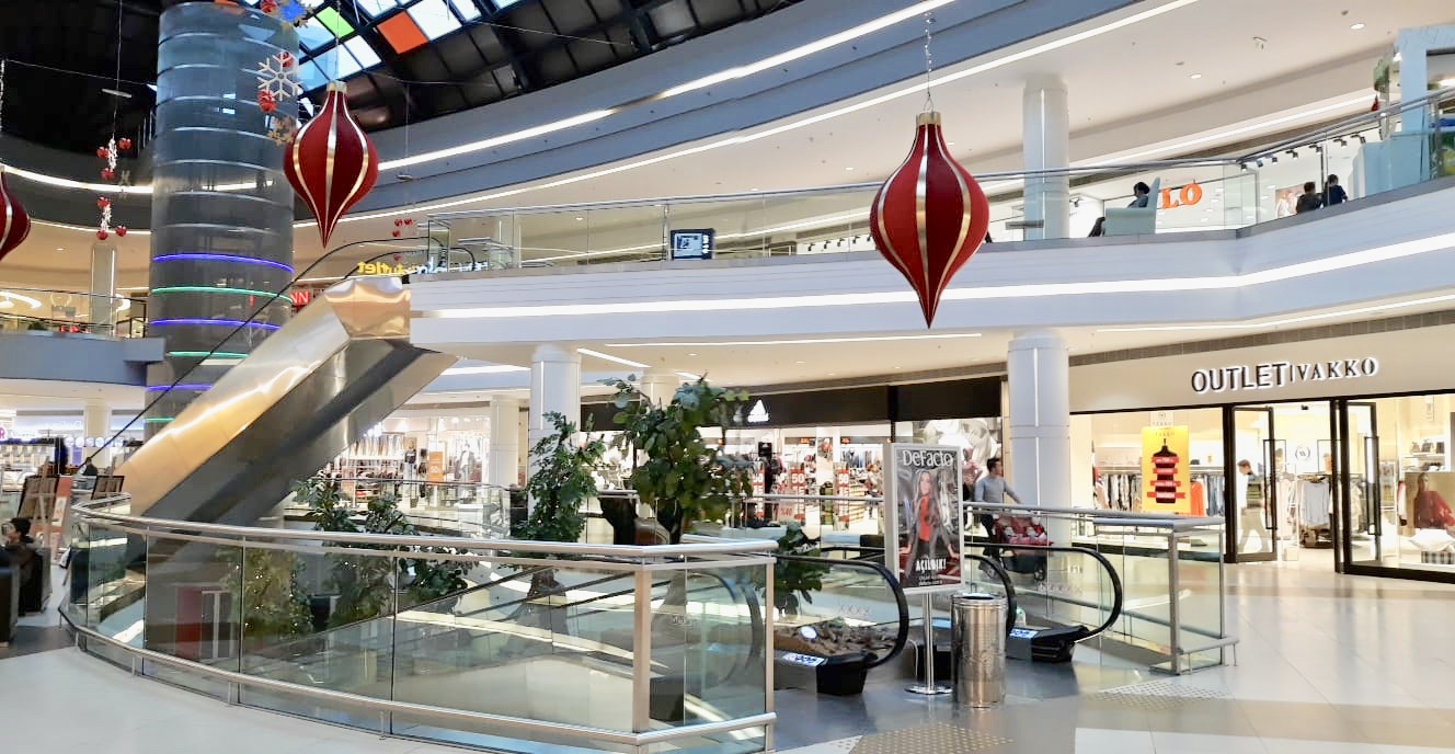 Yerel ve uluslararası markaların yanı sıra yemek alanı ve süpermarketin bulunduğu mütevazı alışveriş merkezi.